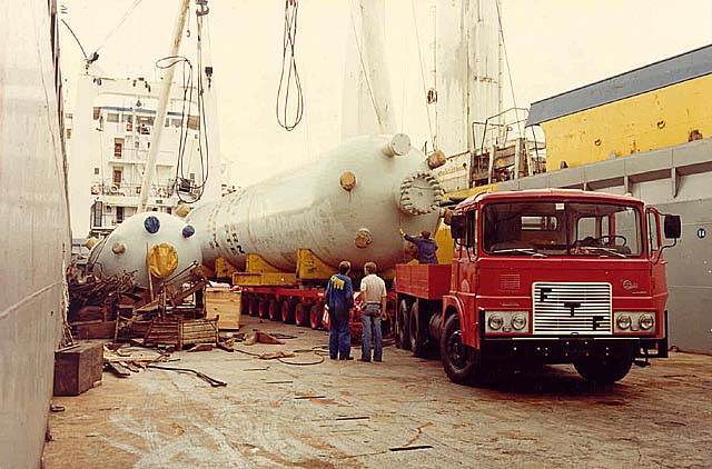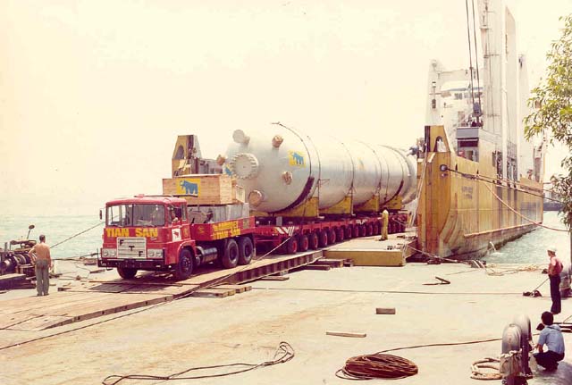 lines of Scheuerle trailers Transported a big reactor.