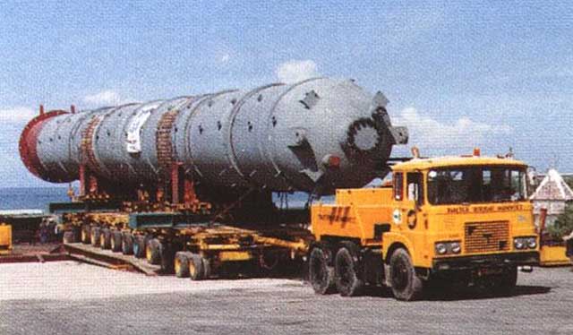 lines of Scheuerle trailers Transported a big reactor.