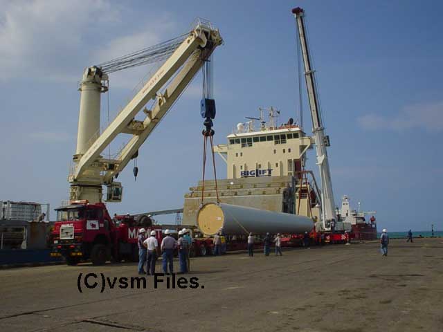 together with 2 times 8 lines fishbone Scheuerle trailers are used by the transport