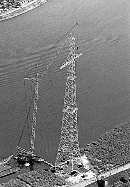 The biggest crane of formely "van Twist" Gottwald MK 350 here on 4 tempory foundations during the building of the Leksekruismasten.